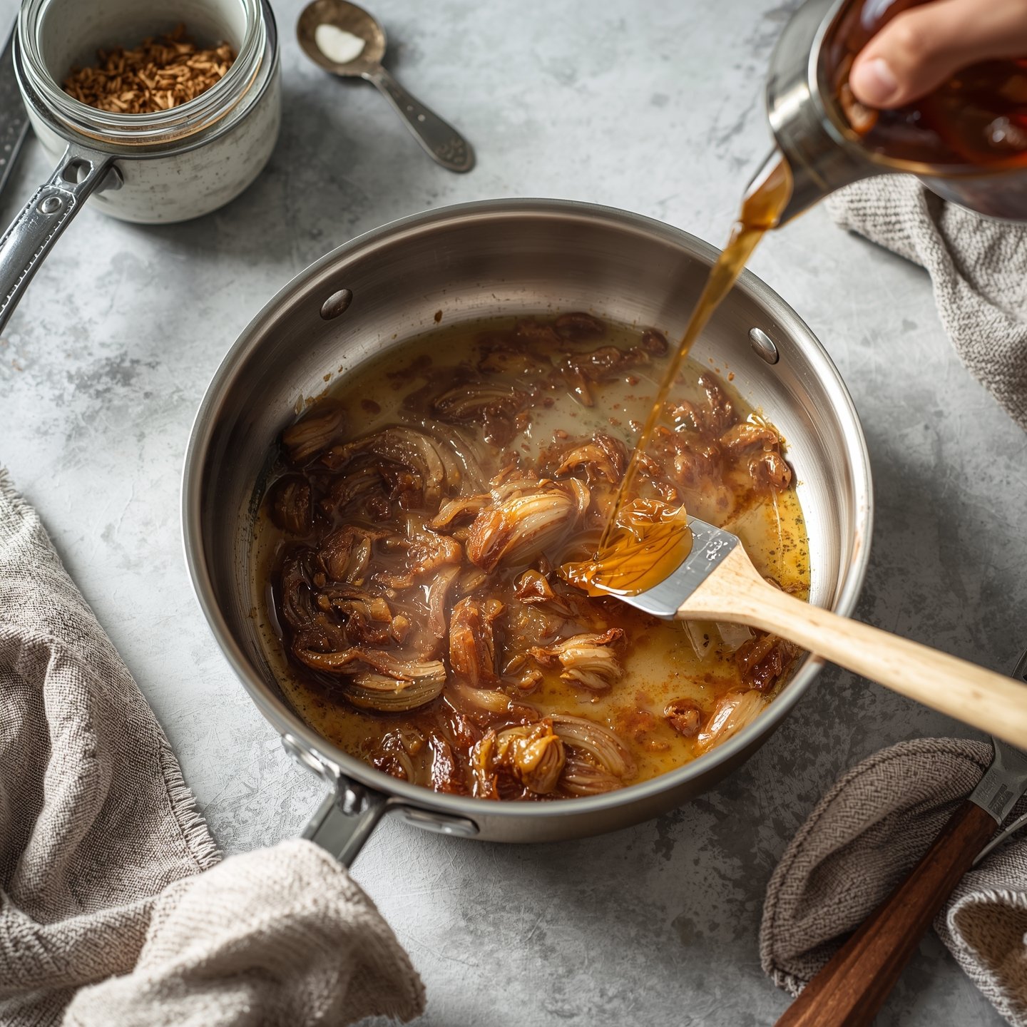 - Deeply Caramelized Onions: Slowly cooking the onions for 1–2 hours brings out their natural sweetness and rich, golden-brown color, creating an intense flavor base that’s hard to replicate in any shortcut version.